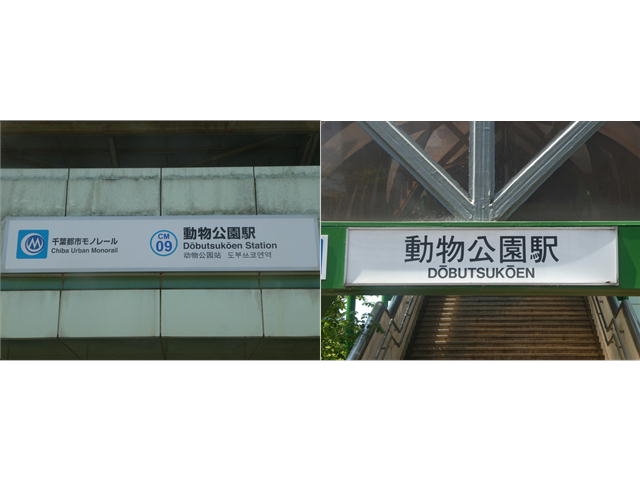 駅の看板。千葉市動物公園の開園は当駅開業より3年早い1985年