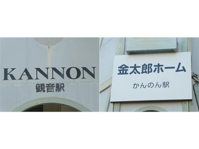 .jpg) 出札口が違う場所だった頃の観音駅。後にたい焼き屋跡地に移動する