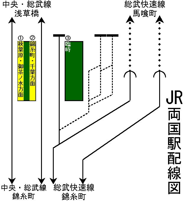 臨時用の3番線ホームを持つ、両国国技館最寄り駅
