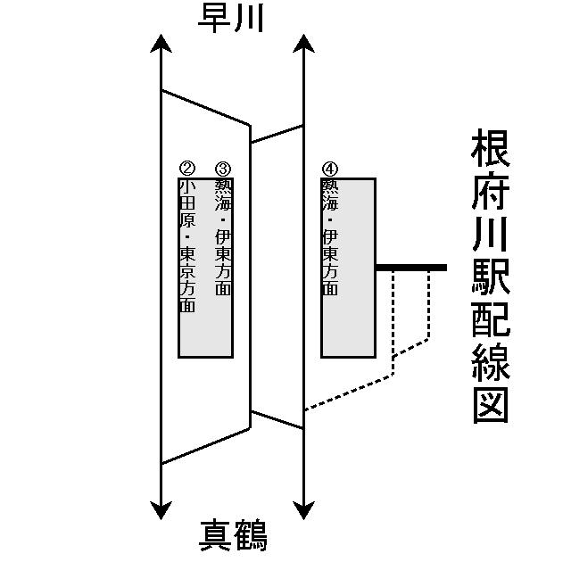小田原・横浜・東京方面。当駅は東京駅から乗り換えなしで約1時間30分。グリーン車で贅沢しながら来るのも良い