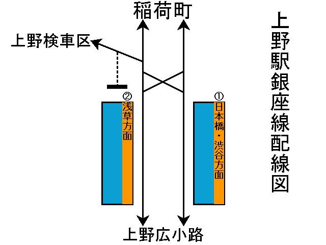 銀座線は稲荷町寄りに両渡り線と銀座線の車両基地、上野検車区へ通じる入出庫線を持ち、平日のラッシュ時間帯に渋谷方面から当駅発着がある。また終電に当駅止まりが設定されている。