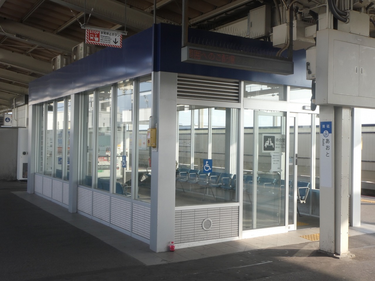 青砥駅ご案内。当駅は3階建て。改札階は正規の階の間にあるM2階