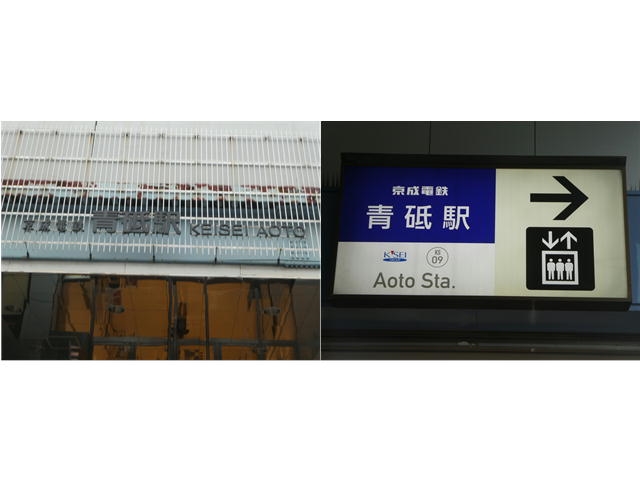 青砥駅の文字。京成電鉄の駅名表記は看板になりがちで、左の文字だけのタイプは少ない