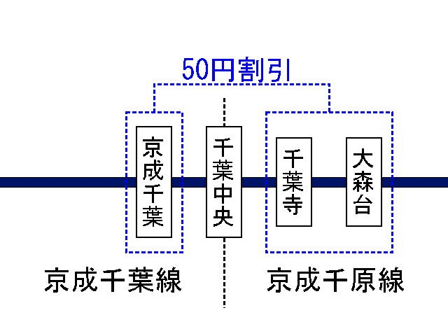 まず一つ。「京成千葉」と「千葉寺」「大森台」を相互利用すると50円割引になる。