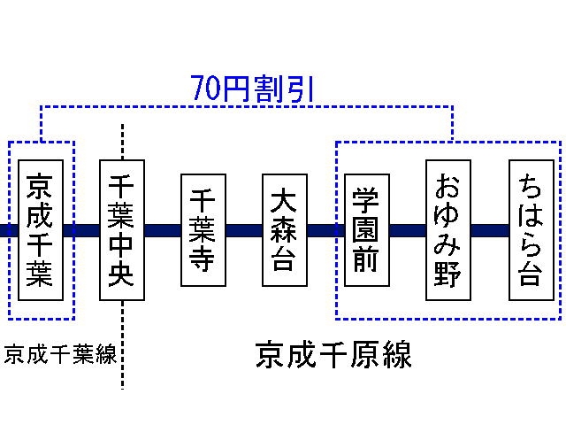 次。「京成千葉」と「学園前」「おゆみ野」「ちはら台」を相互利用すると70円割引になる。