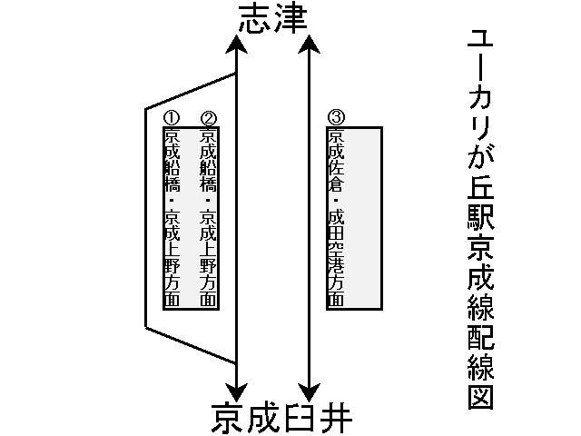 通勤特急までの優等列車が停車する。京成では数少ない2面3線ホームを持ち上り(京成上野方面)のみ待避可能な構造。下り(成田空港方面)は3番線の1線だけで待避ができないが将来的に4番線を敷設し下りも待避可能な構造になっている。