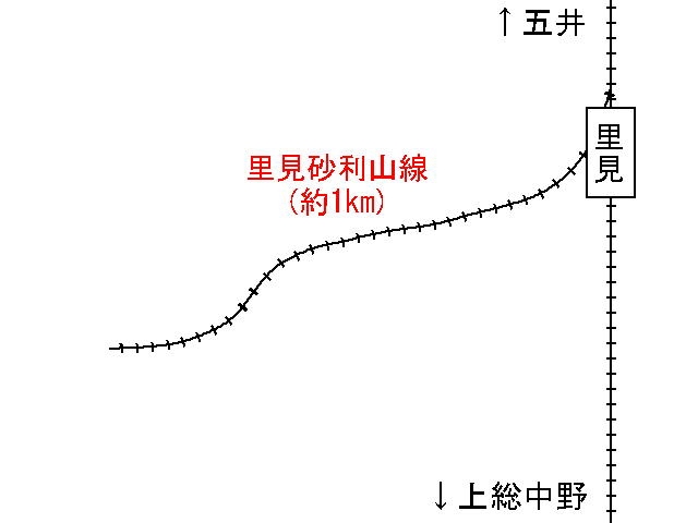 里見駅南西の万田野(まんだの)地区、この辺りの山地には多量の山砂利が埋蔵されていて1925年に小湊鉄道線「五井」〜「里見」間が開業すると、その砂利の採掘権を得ていた小湊鉄道は万田野地区に約1kmの貨物線を敷いた。貨車に積み込んだ砂利を里見駅で機関車に連結し、五井駅まで運搬していたのだ。