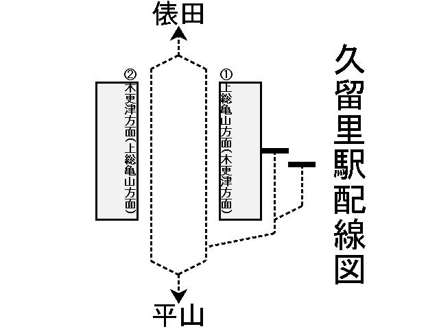 日中は大半が「木更津」〜「久留里」間の折り返し運転となるため1・2番線を交互に発着する。