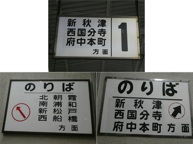 のりば案内。行き先にテープが貼られているが、右下の「のりば」が良い
