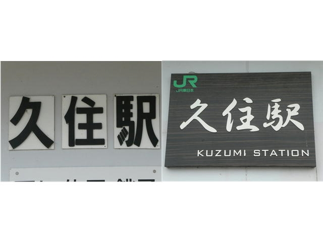 久住駅の文字。右のは総武本線の南酒々井駅と同じもの