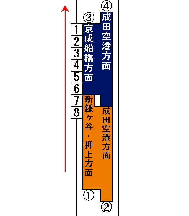 しかし、やはり用地が厳しかったのか京成本線上り(京成上野方面)3番線ホームは有効長が6両しかないため、8両編成の後ろ2両が成田スカイアクセス線1番線ホームにかかってしまう事態が発生している。