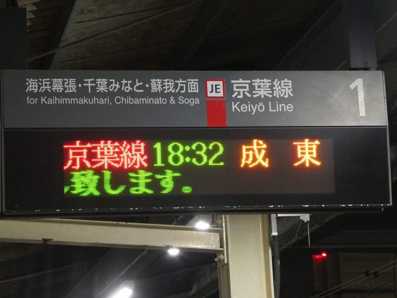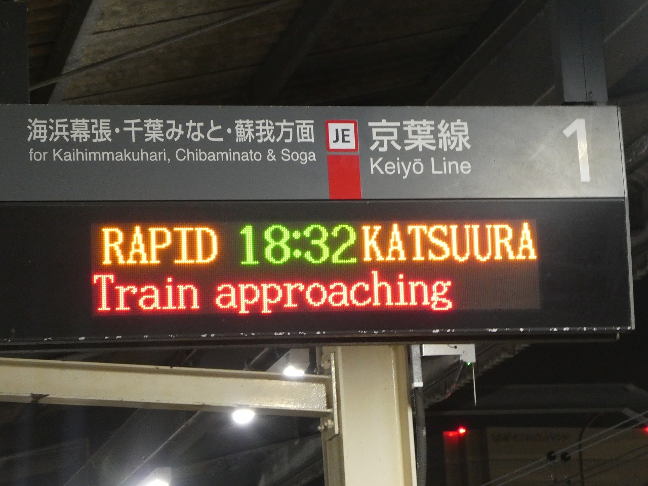2024年2月17日(土)に海浜幕張始発鬼怒川温泉行き、翌18日(日)に鬼怒川温泉始発海浜幕張行きというスケジュールで運行。京葉エリアから鬼怒川温泉へのお出かけに便利な臨時列車。発車標での鬼怒川温泉行きを期待したが「JR」しか表記されなかった。鬼怒川温泉駅はJRではなく東武の駅なので、用意されていなかった(しなかった)ものと思われる。
