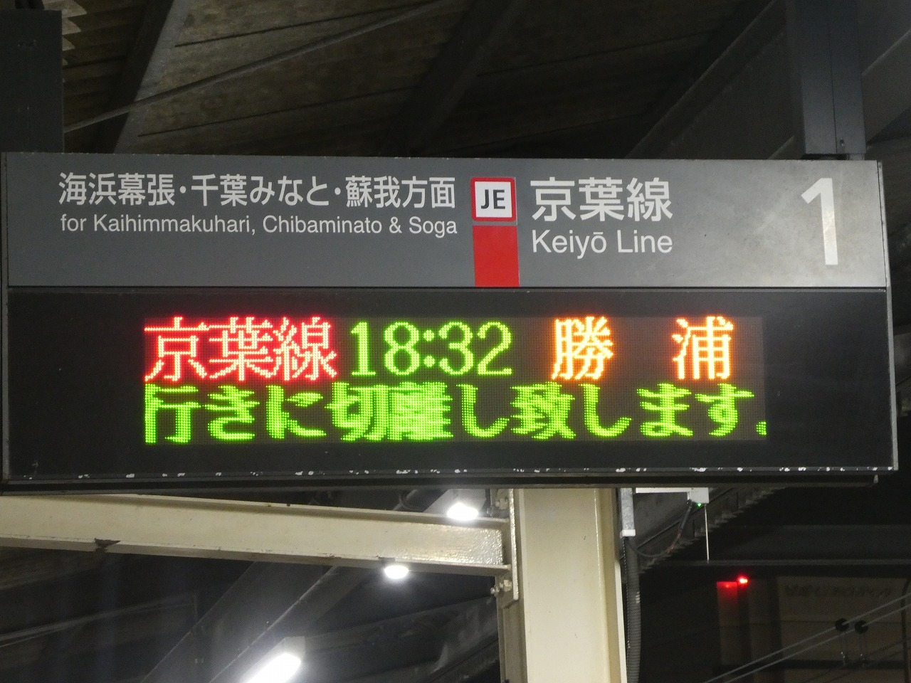 2024年3月16日のダイヤ改正で京葉線の快速運転時間が縮小、勝浦行きも上総一ノ宮行きに短縮され各駅停車成東・上総一ノ宮行きとなった。