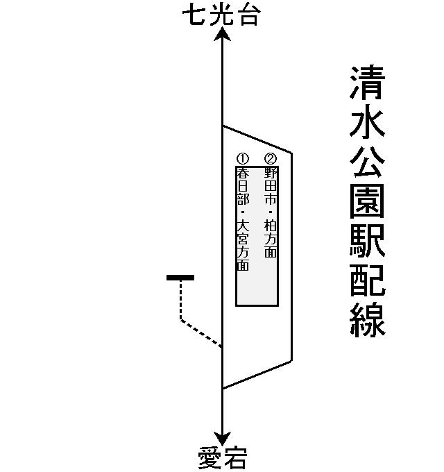 2面2線ホーム。柏方面からの区間列車が廃止されるまでは2面3線ホーム。「清水公園」〜「梅郷」間の高架化に伴って長年に渡りホームの構造を変えてきた。