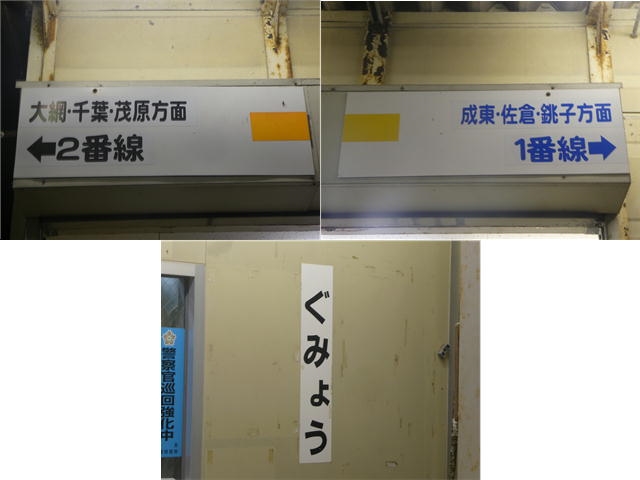 .jpg) 2024年6月8日訪問時、サインが更新されていた。東金線は成東駅で総武本線と接続しており、佐倉方面なら直通可能である