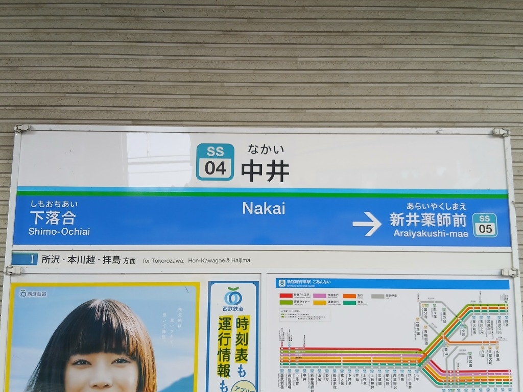 西武新宿線中井駅に到着しました。高田馬場駅まで2駅、西武新宿駅まで3駅です。普通列車しか止まりませんが主要駅に近いため気にすることもないでしょう。