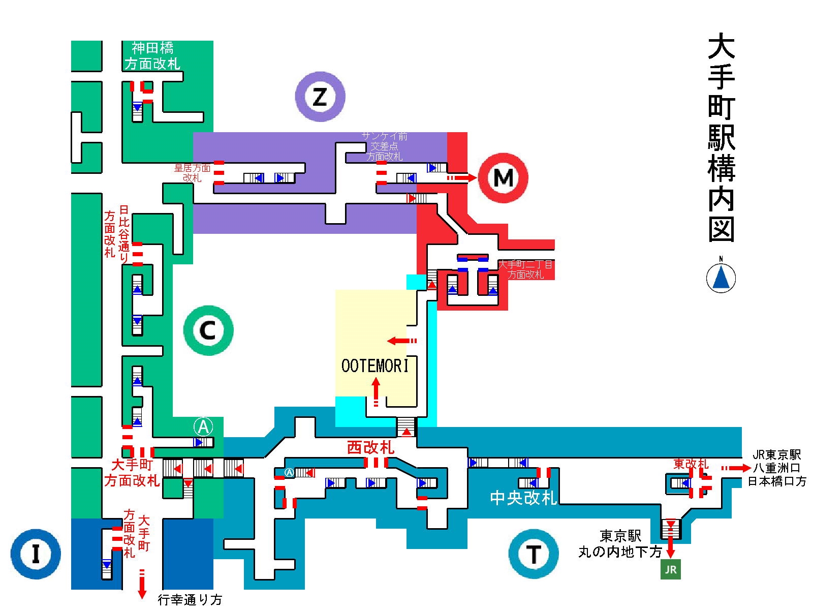 大手町方面改札、C12・C13a周辺。大手町交差点