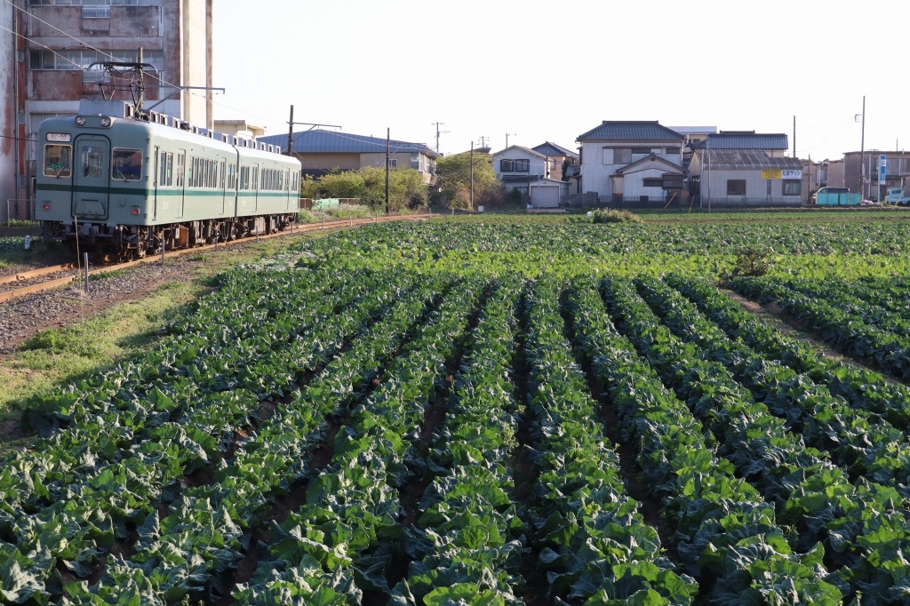 君ヶ浜駅のすぐ東には見晴らしの良い田園地帯が広がっておりそこを走る銚子電鉄を撮影できる。見晴らしの良い区間が少なめの銚子電鉄における貴重な撮影地。