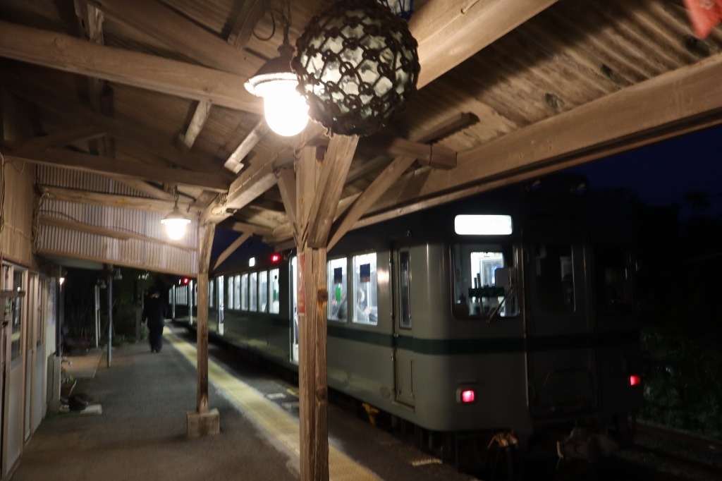 夜の外川駅。3連休で天気にも恵まれていたためか夜なのに人は多かった。地元のおばさんは「こんなに人がいるけど何かあるの?」それに対し自分は「3連休だからじゃないですか?」「そうねーお天気も良かったからねー」