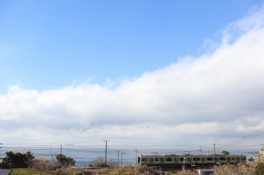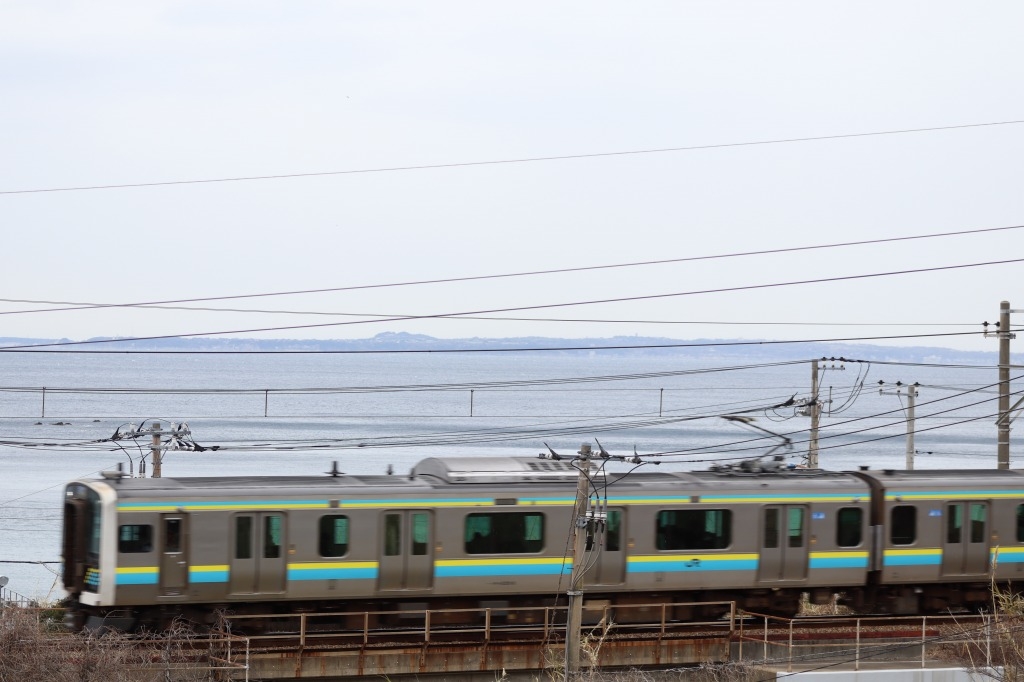 浜金谷駅から約1km。国道127号「内房なぎさライン」の富津金谷IC交差点のアプローチ橋の上から内房線を撮影する事で海沿いを走る1枚となる。キャパは少ないかも。東京湾フェリーからも1km圏内なのでそちらでトイレを済ませたり、時間に余裕あるならば買い物や食事もできる。