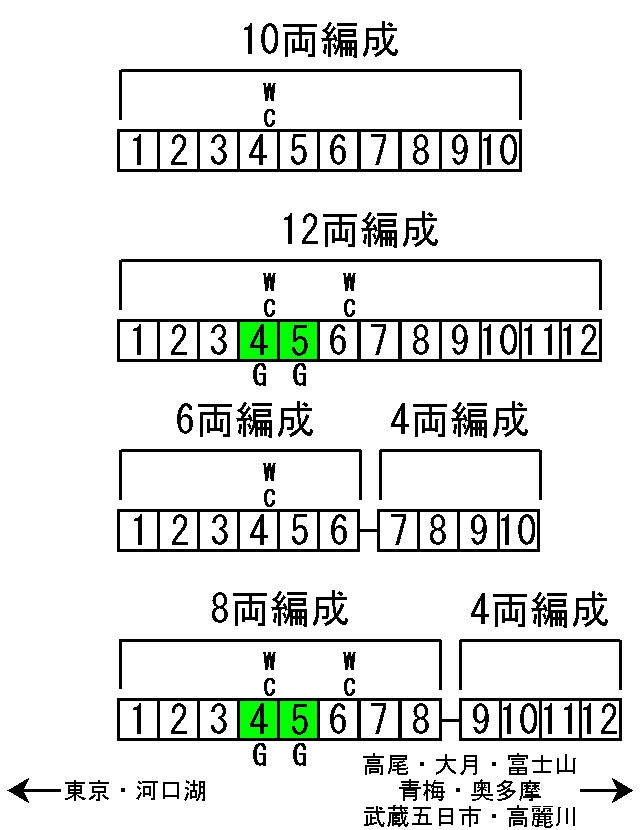 2024年10月13日より4・5号車にグリーン車を連結した12両編成の運行を開始。順次12両編成が増えていき、2025年3月15日のダイヤ改正までお試し期間として無料でグリーン車を利用できた。そして2025年3月15日のダイヤ改正より中央線と青梅線でグリーン車サービスを開始し、グリーン車のない10両編成の運転を終了した。