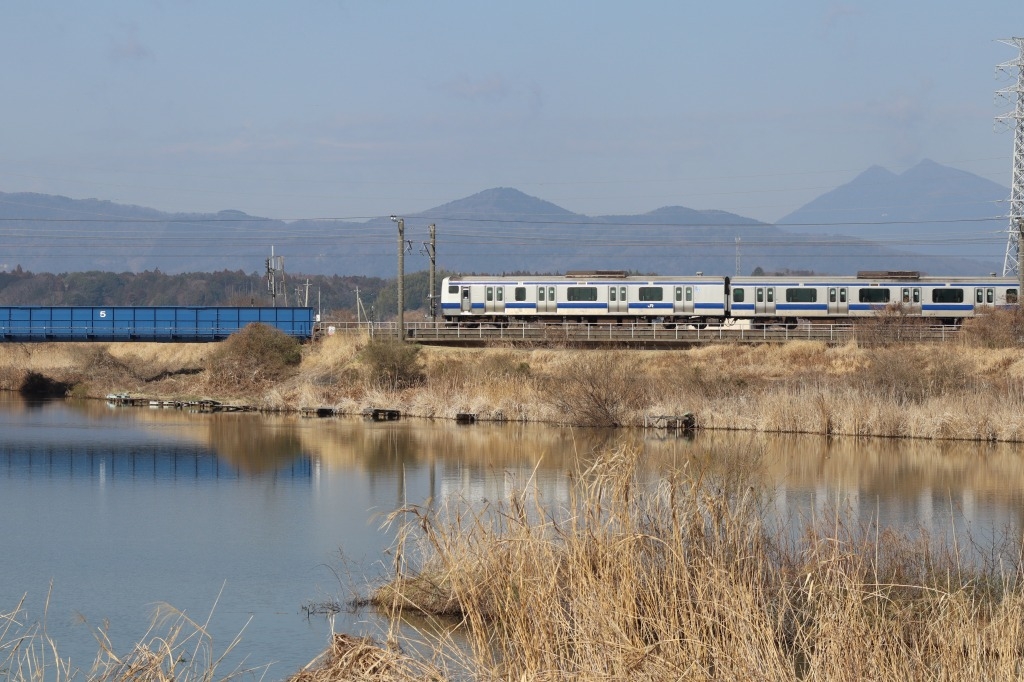 東北本線「黒磯」〜「新白河」に突如姿を現す青い車両、常磐線や水戸線の主力車両E531系。7駅だけE531系が走るのは黒磯以南が直流電化、黒磯以北が交流電化であるため交直流電車のE531系が走っている。この区間には水戸線の小山駅からの回送で入線する。