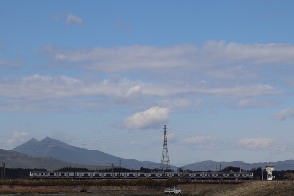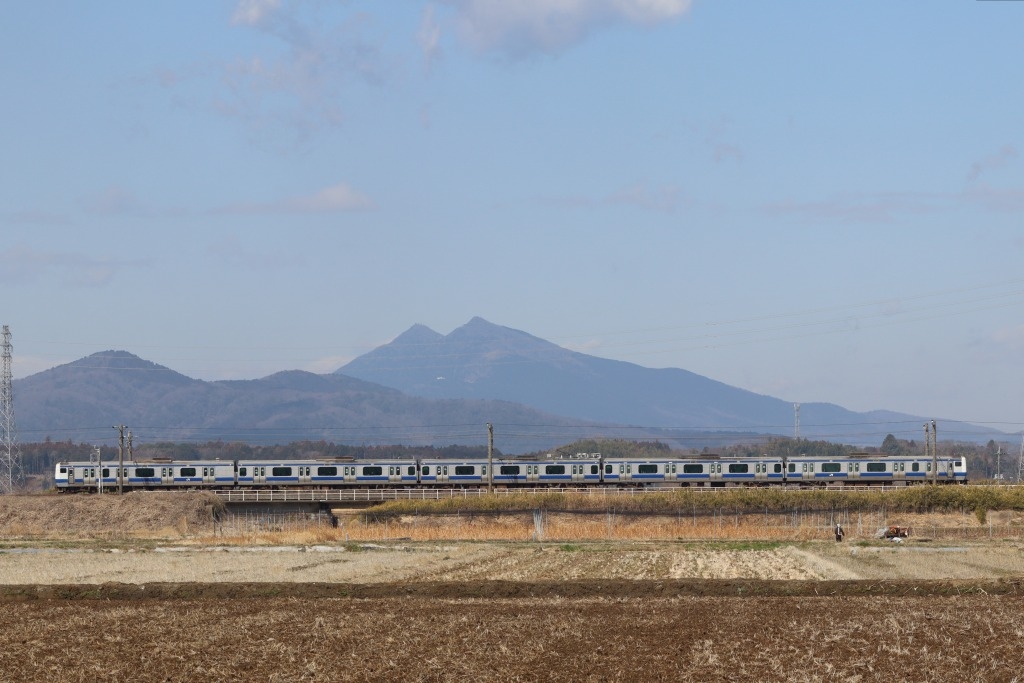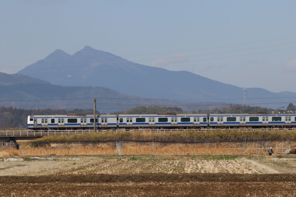 「神立」〜「高浜」間、筑波山をバックに走る