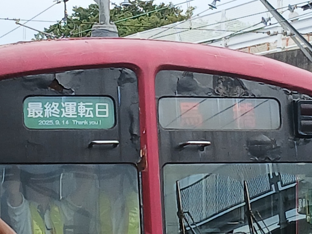 前面の方向幕が「最終運転日」に変わり、最後の運転へ