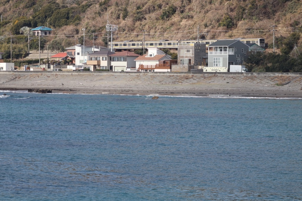 「竹岡」〜「浜金谷」間、海をバックに走る