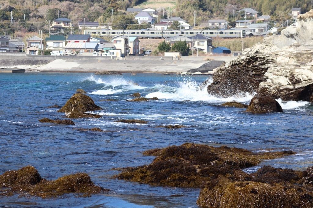 「江見」〜「太海」間、波の打ち寄せる海岸