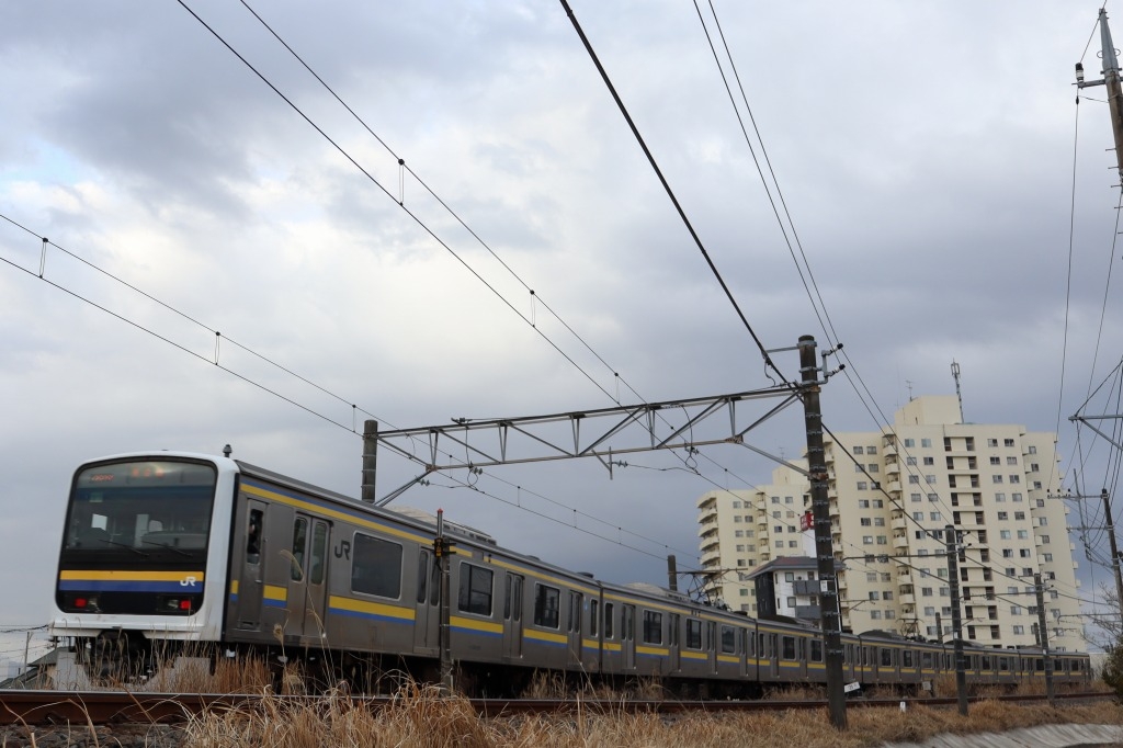 京葉線は成東・勝浦行きで切り離したE233系4両編成のみの撮影となる。切り離しできない京葉線の209系は東金線に来ない。