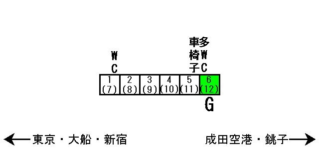 普通車5・11号車は成田空港方面運行時、13A・13B・13C・13D座席は座席前が車椅子対応座席、2B・2C座席は座席前が車椅子スペースとなり、テーブルがない。補完として、フックとドリンクホルダーが2つある