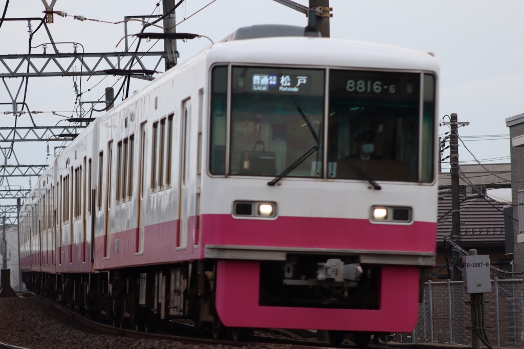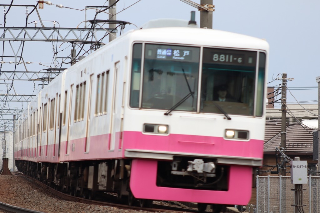 「松戸」〜「上本郷」間、直線を走る京成カラーの8800形
