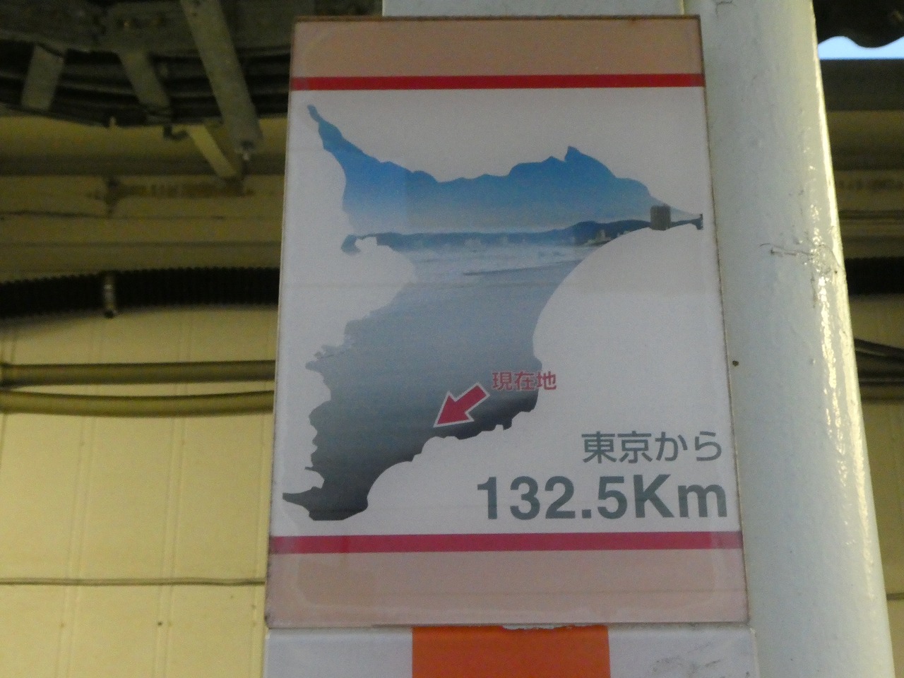 そうした性質からか、千葉県房総地区の一部駅には東京から○○kmと書かれた看板がホーム上に設置されている。どこを基準として何kmなのかは不明だが、この看板はこの駅が東京から何kmの場所に位置しているかがわかるだけでなく、看板に描かれた絵でその駅周辺の特色が理解できるようになっているのだ。