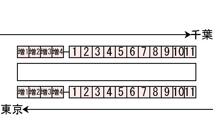 5両編成だと船橋駅ではホーム新船橋寄りに停車しない