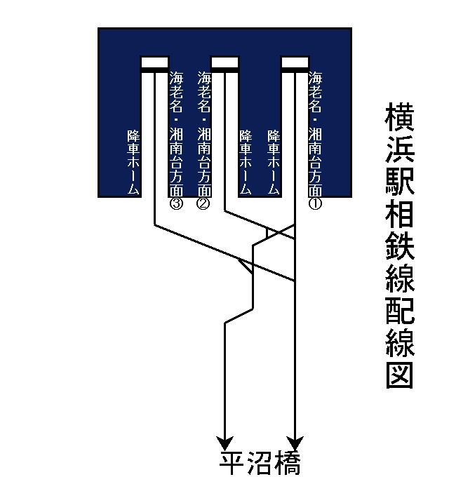 相鉄線は横浜駅全体から見てみなみ西口にある。相鉄本線の起点駅及びターミナル駅。乗車口と降車口が別々になった頭端式ホームを持つ。