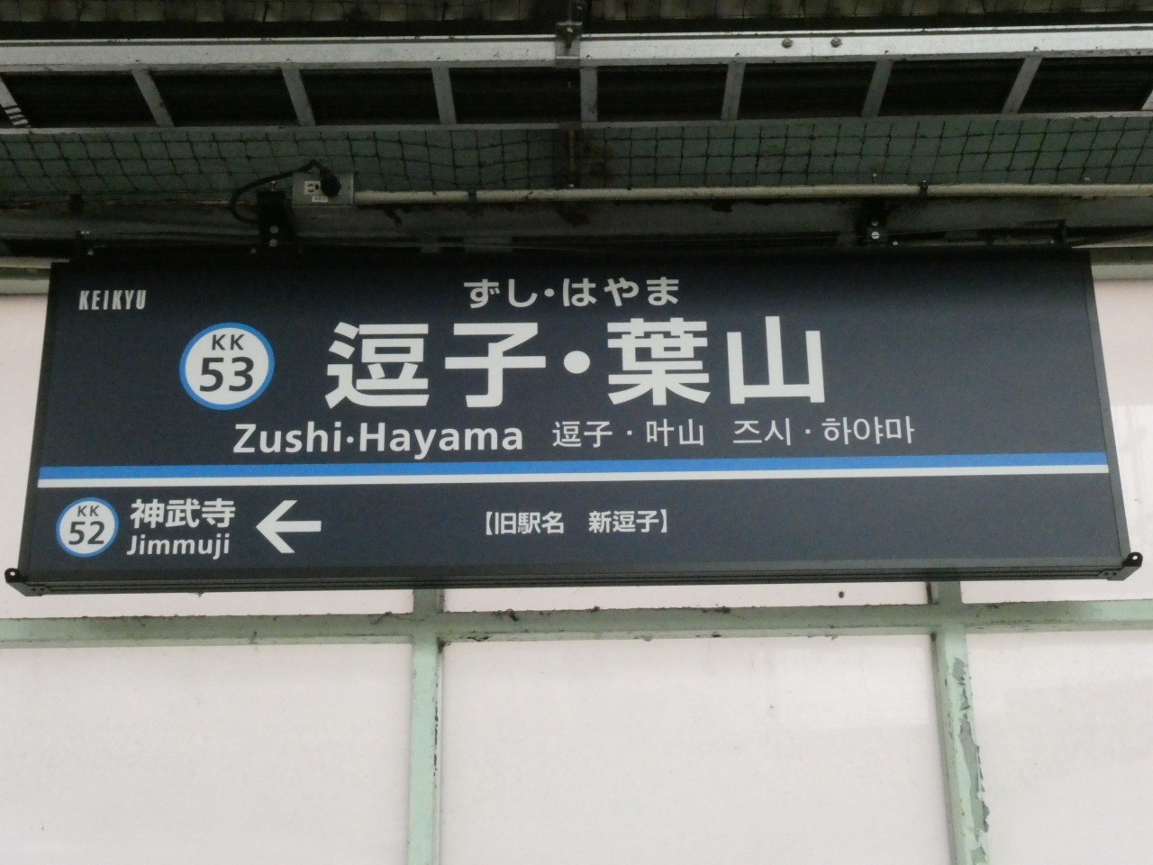青い標識はこんな感じ。逗子・葉山駅と書かれています。