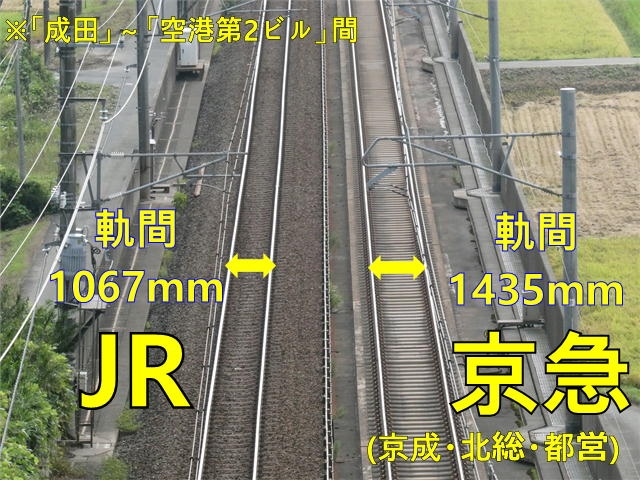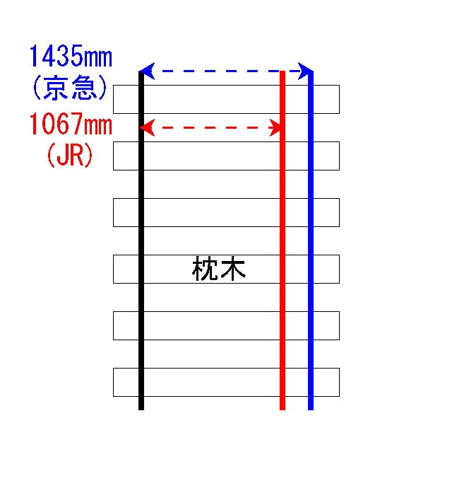 このような状況に対応するために横須賀線から繋がっている京急線では三線軌条というものが採用されている。