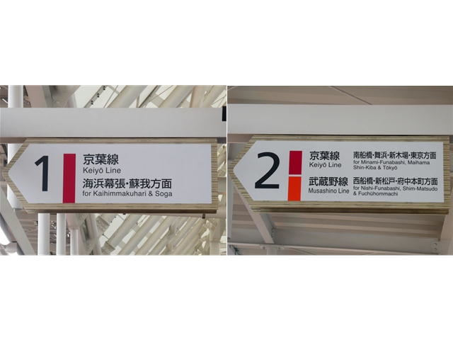 .jpg) 1番線下り(蘇我方面)ホームは1階。当駅には各駅停車と武蔵野線直通列車が停車する。日中の下り各駅停車は全て海浜幕張行きなため、海浜幕張以東の利用は乗り換えが必要