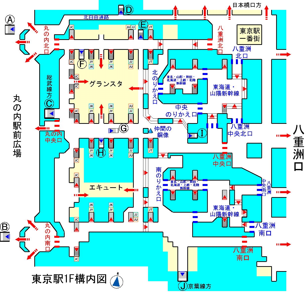 丸の内地下改札の外には東京メトロ丸ノ内線「東京駅」、南には京葉線ホーム(京葉地下)への連絡通路、北には東京メトロ東西線「大手町駅」への連絡通路がある。