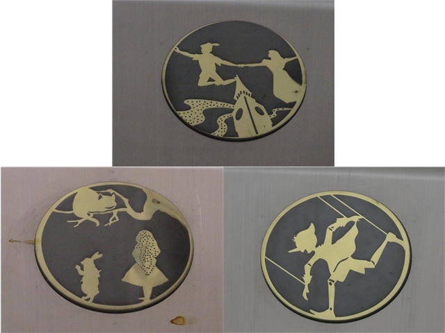 上はシンデレラ城(眠れる森の美女のお城?)、左はかぼちゃの馬車、右はシンデレラ