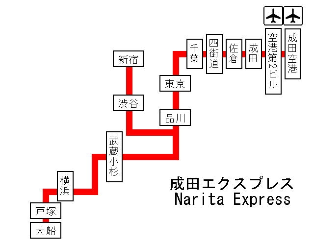 (東京方面)→千葉・都賀・四街道・物井・佐倉・酒々井・成田・空港第2ビル・成田空港
